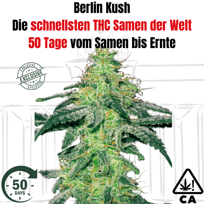 Berlin Kush F1 – Die schnellsten THC Cannabis Samen für den Eigenanbau – 50 Tage von Samen bis Ernte